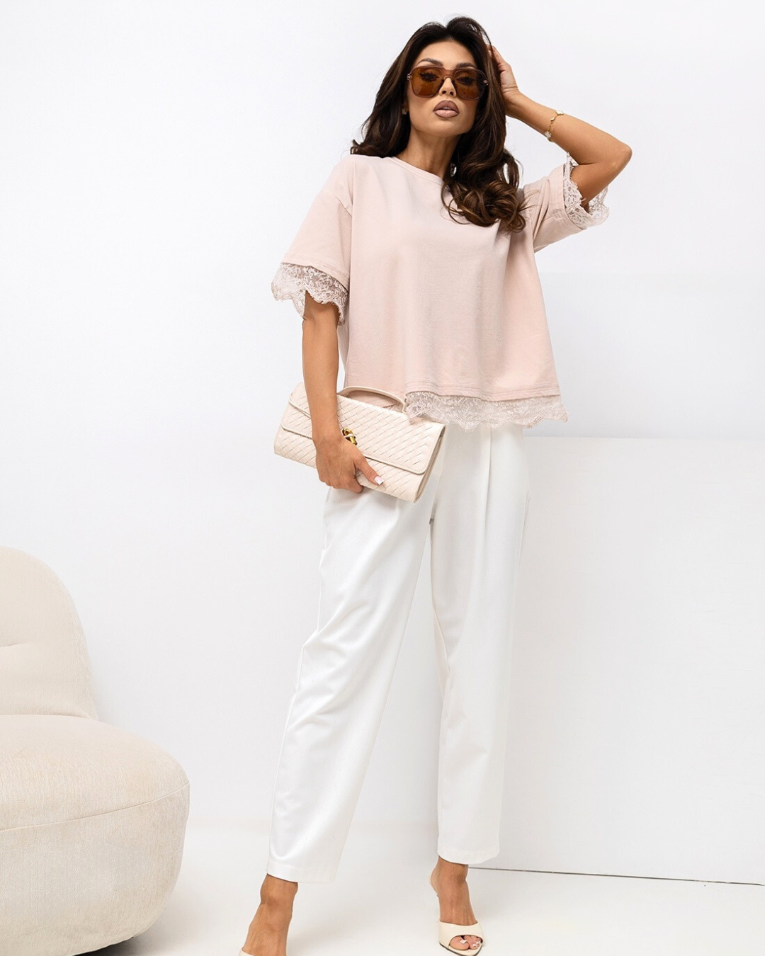 Napisz pierwszą opinię o „Damska bluzka Noemi z koronką- delikatny róż”