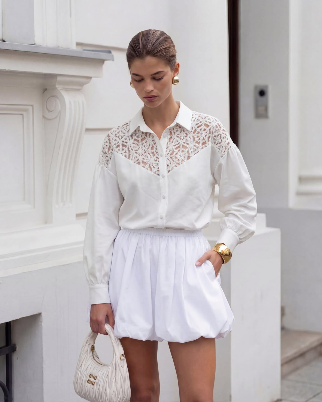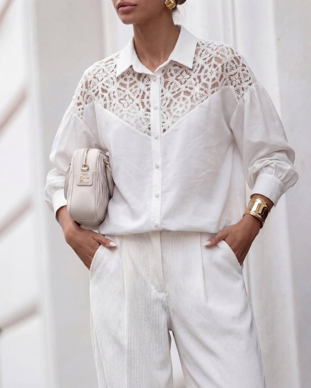 Koszula to wyjątkowo kobiecy model, który łączy klasyczną formę z efektownymi, koronkowymi detalami.