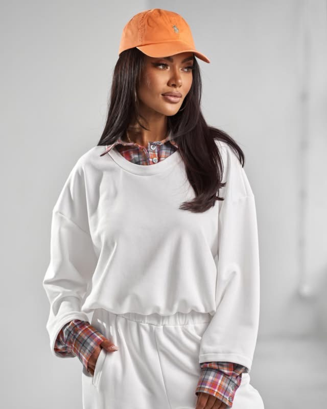 Stylowy komplet dresowy, który łączy sportową wygodę z modnym efektem warstwowej stylizacji. Bluza posiada doszytą koszulową wstawkę u dołu, dzięki czemu wygląda jak połączenie bluzy i koszuli – bez potrzeby zakładania dodatkowych elementów. To rozwiązanie dodaje całości oryginalnego charakteru i sprawia, że stylizacja prezentuje się wyjątkowo.