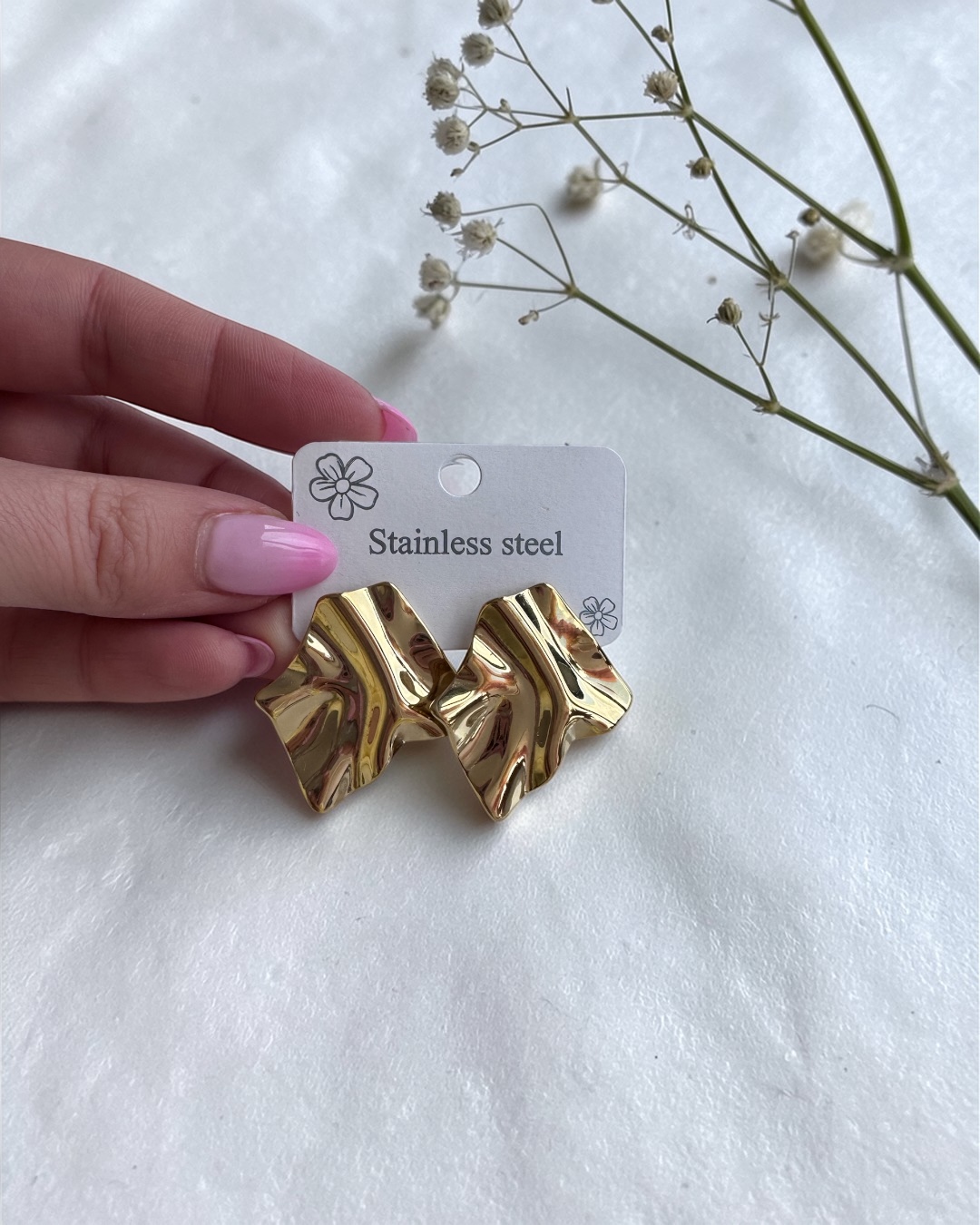 Stylowe kolczyki wykonane ze stali nierdzewnej to idealne połączenie elegancji i nowoczesnego designu. Ich wyjątkowa, nieregularna forma przyciąga spojrzenia i dodaje charakteru każdej stylizacji – zarówno codziennej, jak i bardziej eleganckiej.