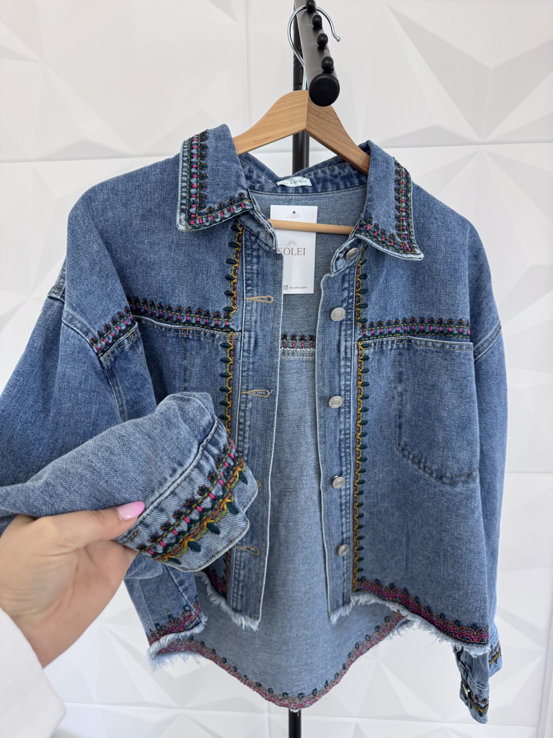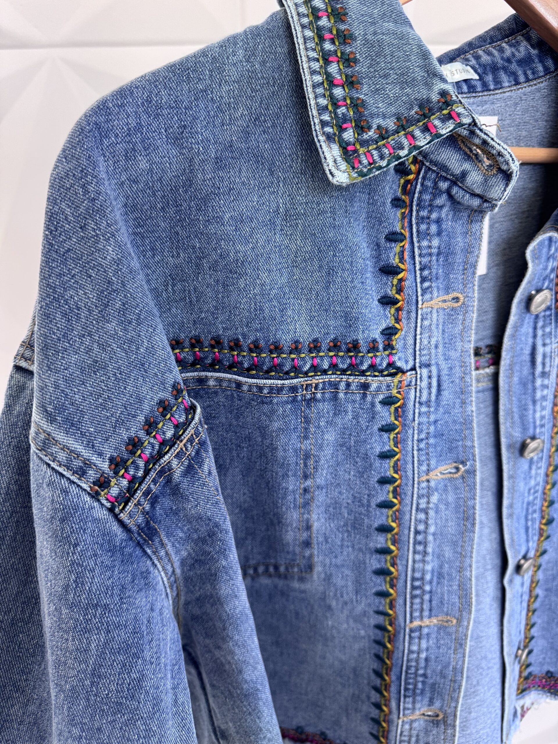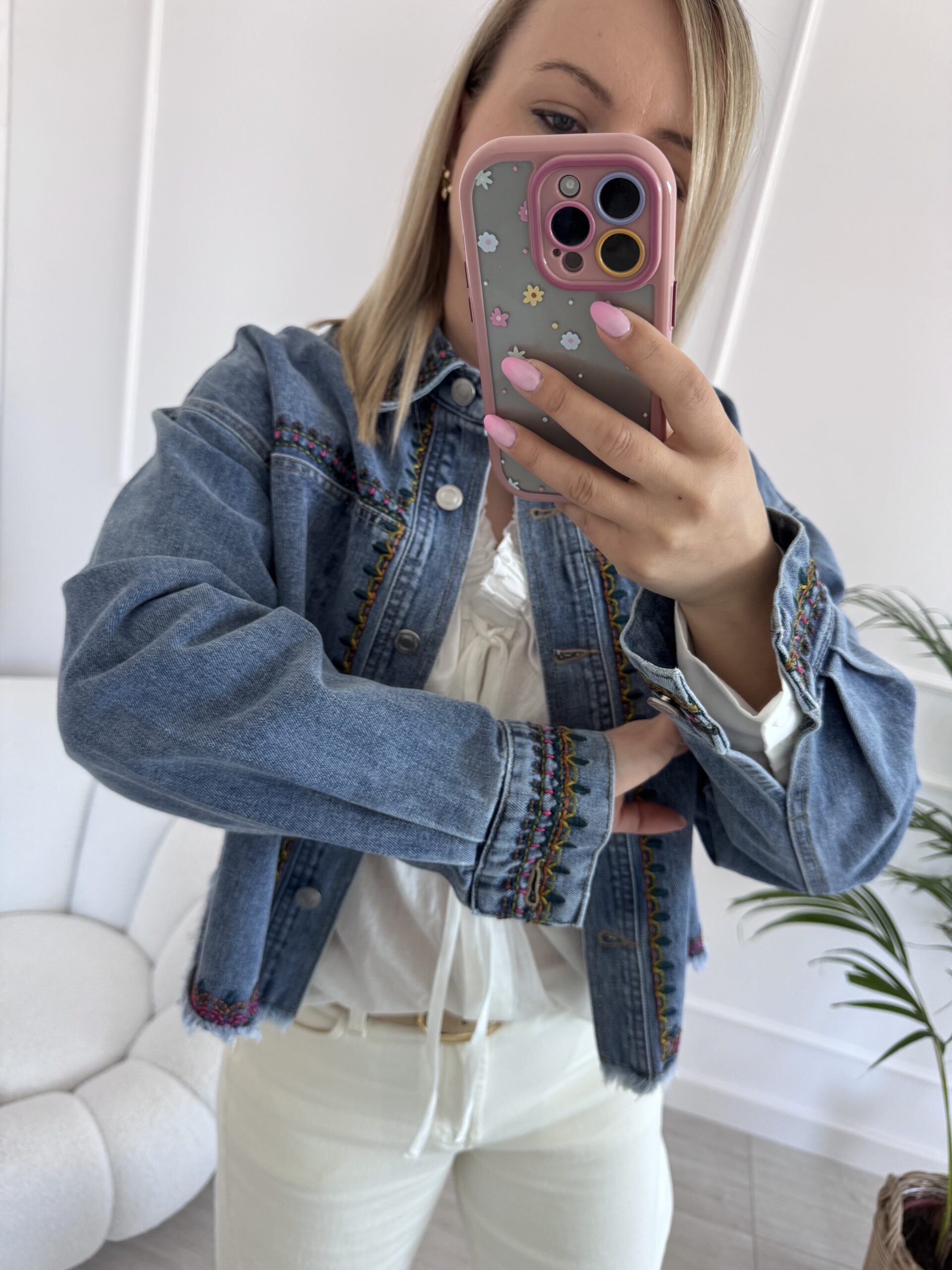 Modna kurtka jeansowa z haftem