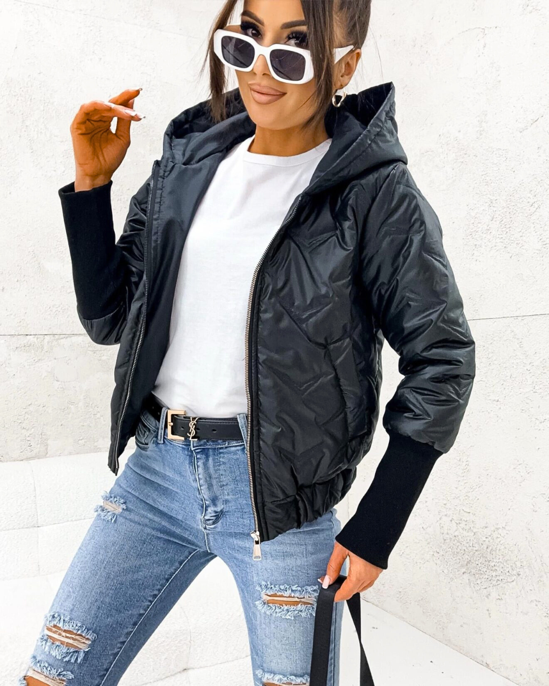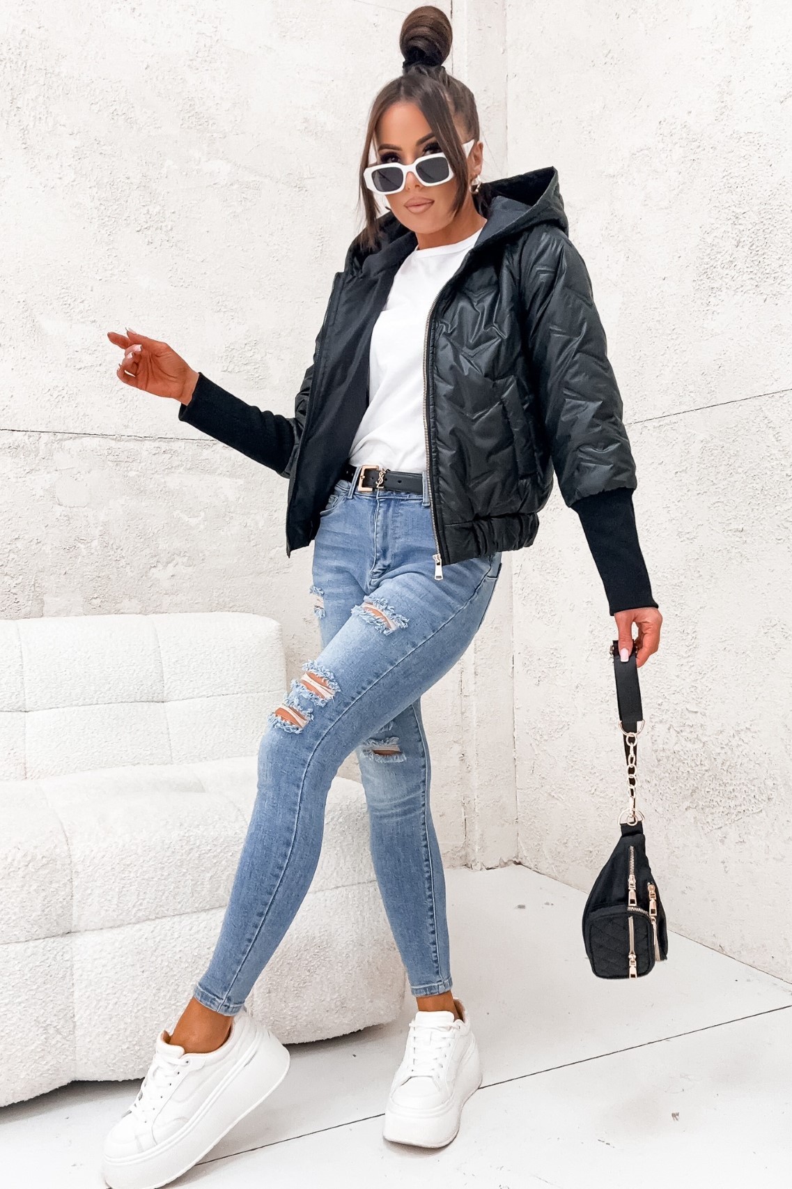 Lekko ocieplana kurtka z kapturem bomberka- czarna