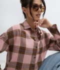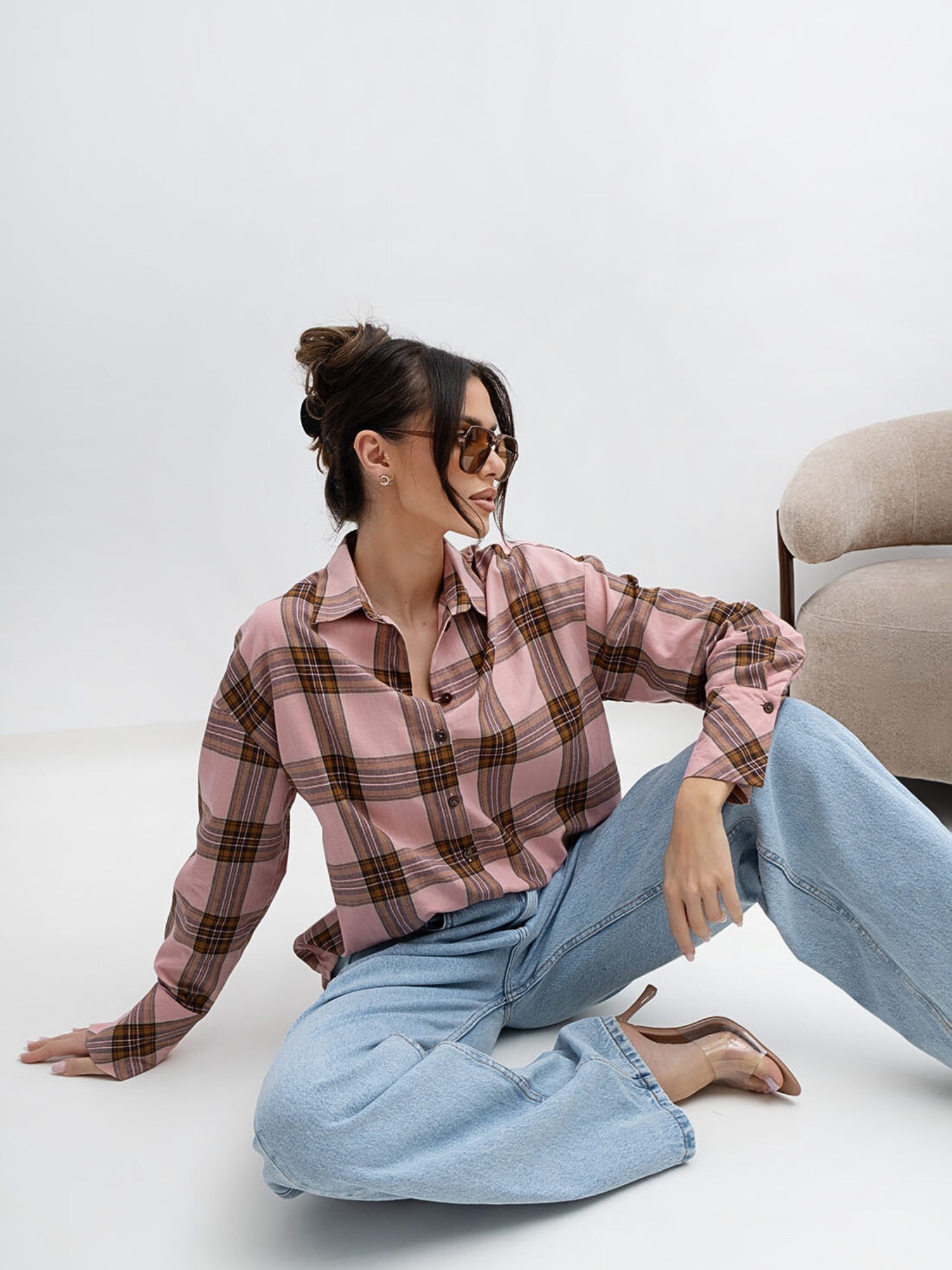 Subtelna, kobieca krata w odcieniach pudrowego różu i ciepłych brązów nadaje stylizacji wyjątkowego charakteru. Koszula doskonale komponuje się zarówno z jasnym denimem, jak i eleganckimi spodniami czy spódnicą, tworząc look od casualowego po smart casual.